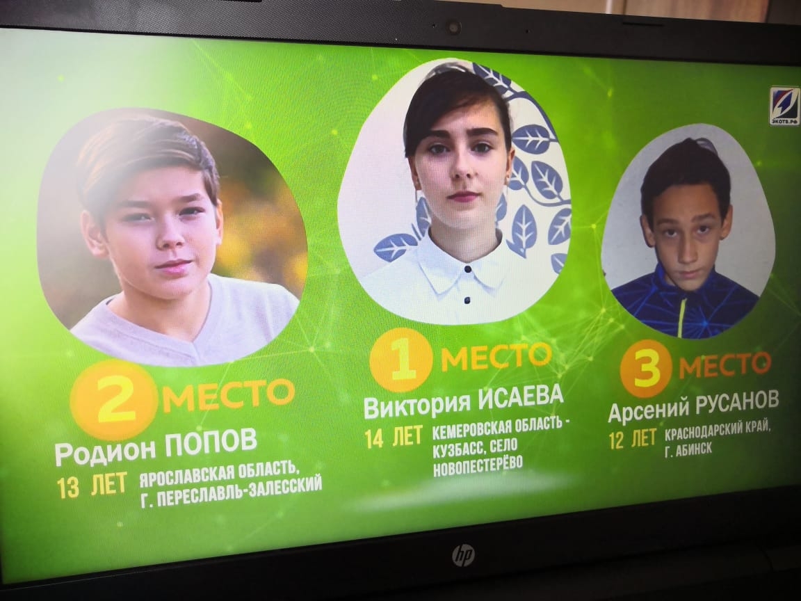 Исаевой Виктории, ученицы 8 класса. Виктория заняла 1 место во Всероссийском